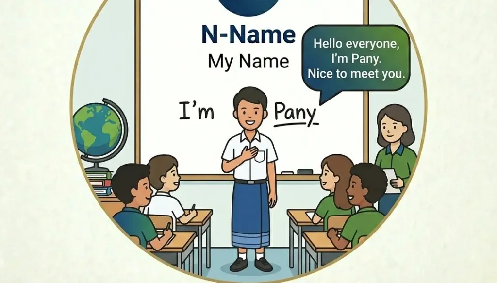 | N | Name — ຊື່ຂອງເຈົ້າ | “I’m Phonxay” |